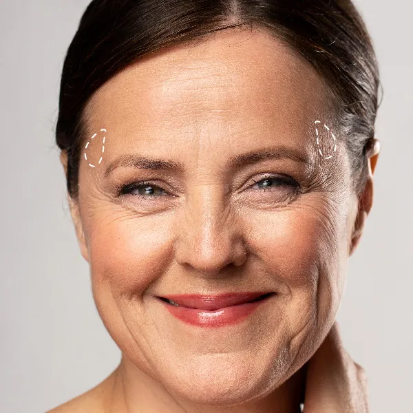Tratamiento con relleno para suavizar las depresiones en la zona temporal y mejorar la armonía facial. El valor del procedimiento considera 1 ml de ácido hialurónico.